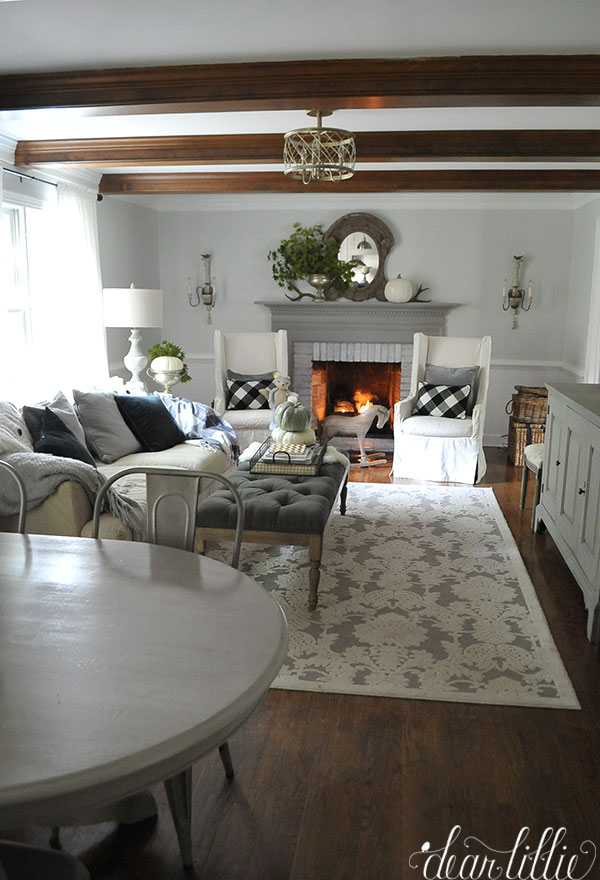 Happy Tuesday! I can’t believe Thanksgiving is just two days away! November has completely flown by! Today we are joining our blogging friends for the Family Room part of our Holiday Farmhouse Series! We shared some photos of ours last week (don’t forget there’s still time to enter the ScentsCicles $3000 Dream Tree Giveaway!) but today we are back with more images of this room from a few more angles.